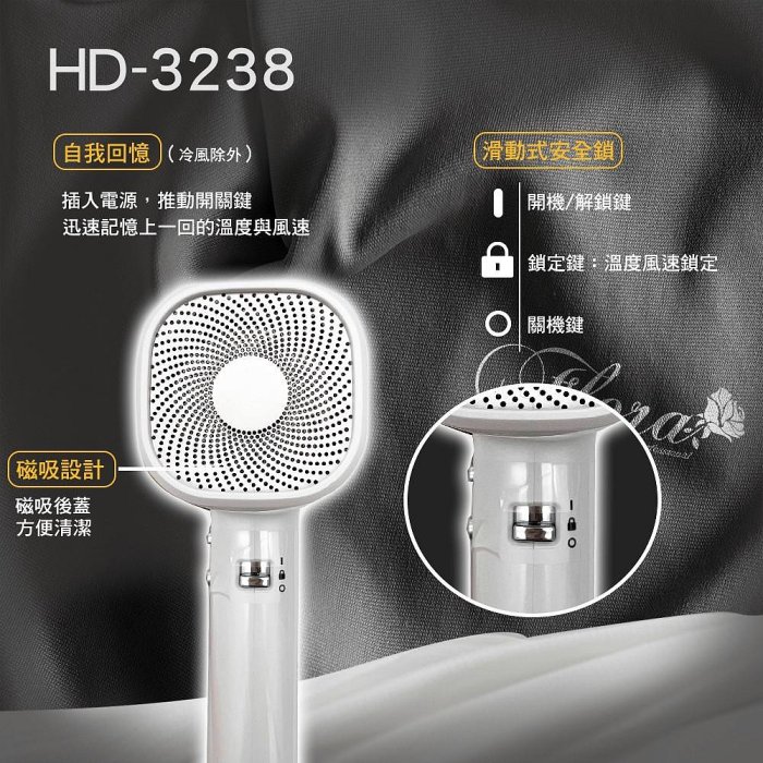 8.安全鎖定,避免吹髮期間誤觸其他按鍵