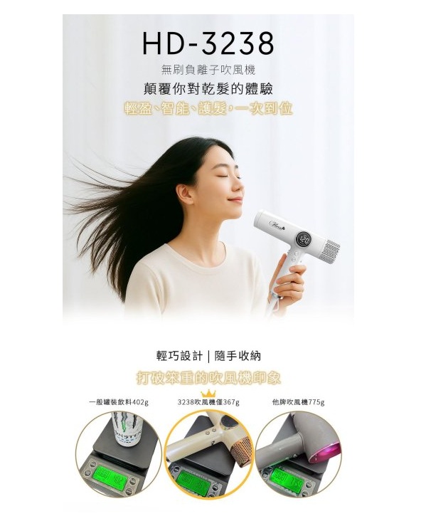 三擋風速(柔和、強、超強)提升吹整效果、節省30%乾髮時間