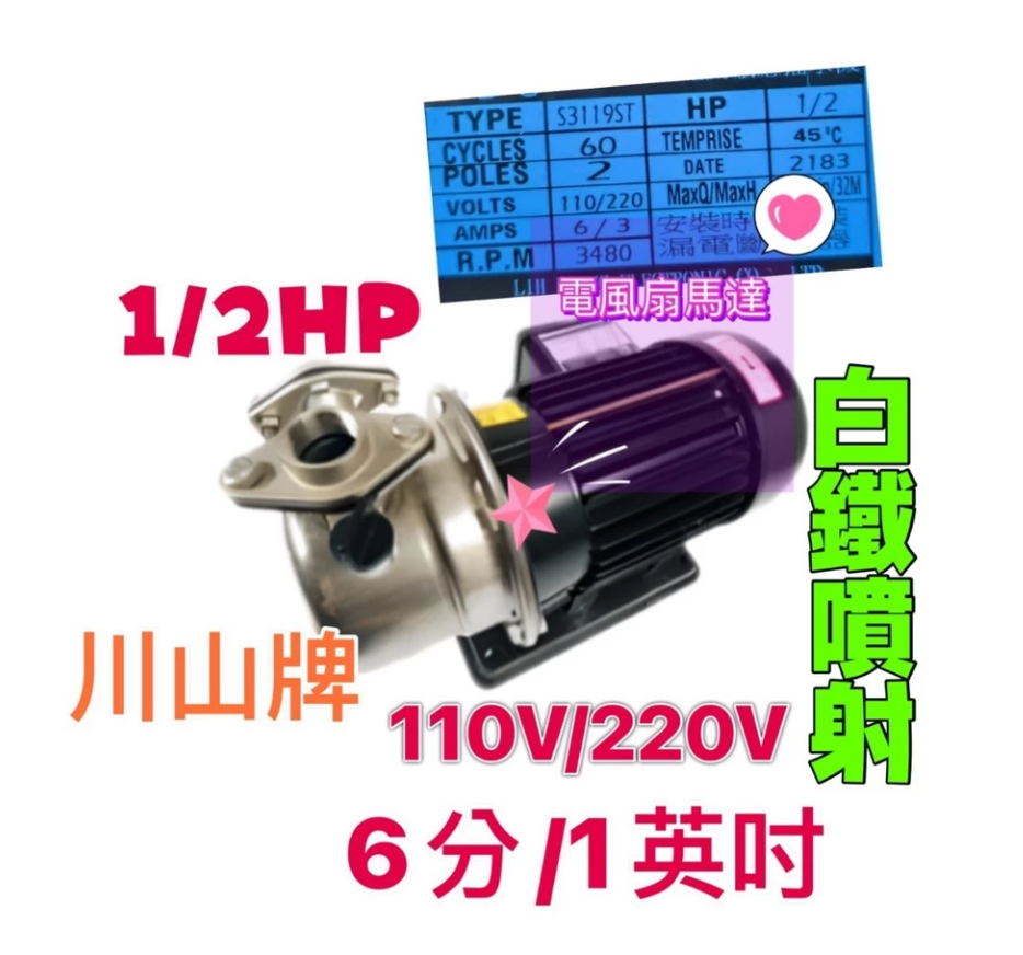 「川山」1/2HP 不鏽鋼噴射式抽水馬達 噴射抽水機 高揚程抽水機 抽井水適用 家用抽水機 非KP320S 數量