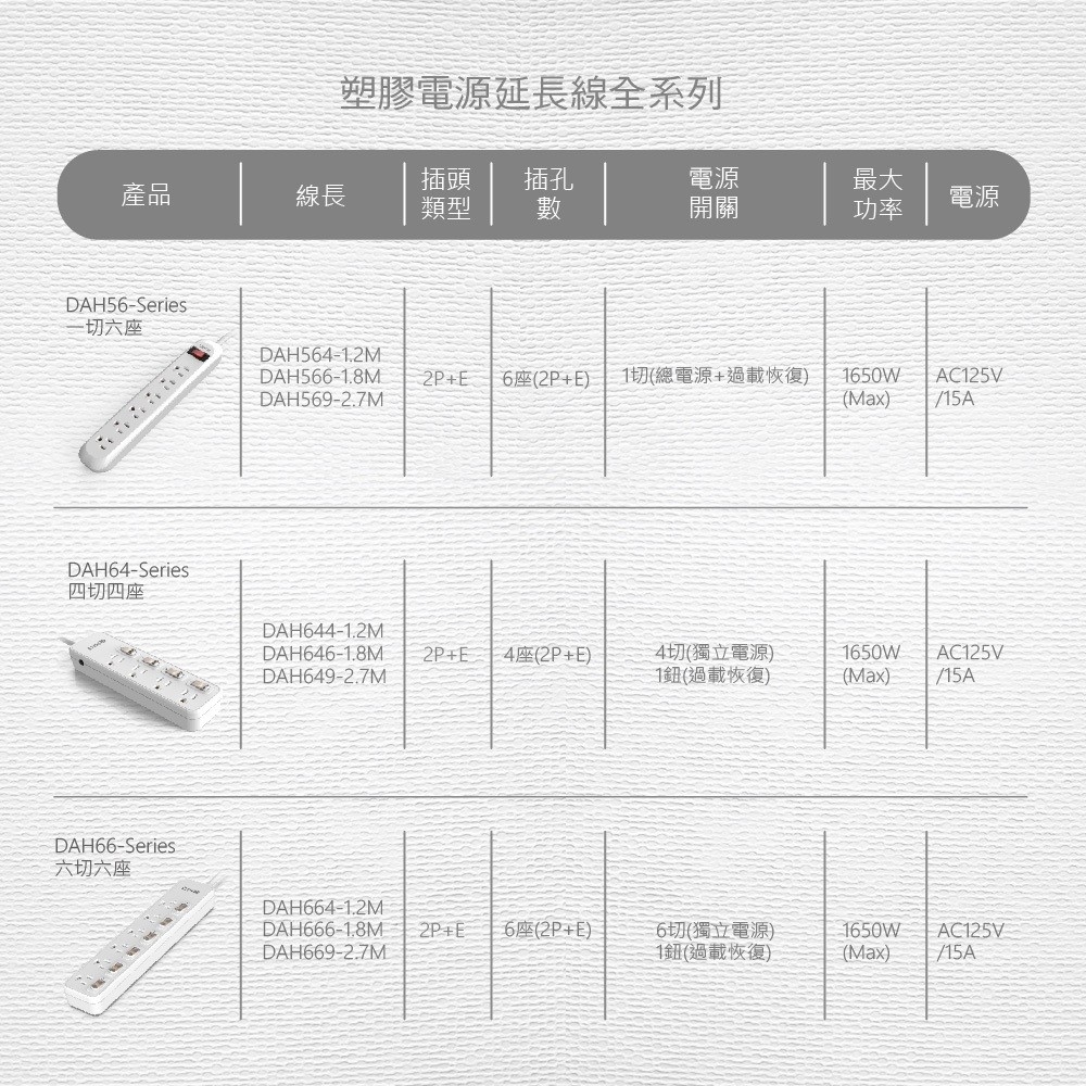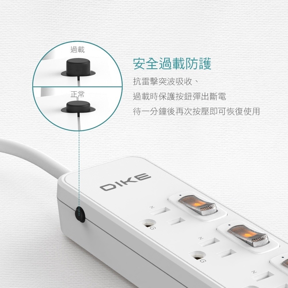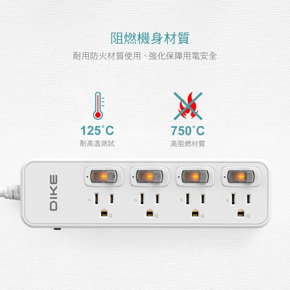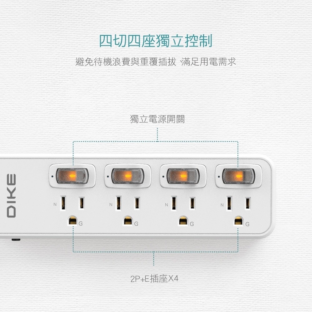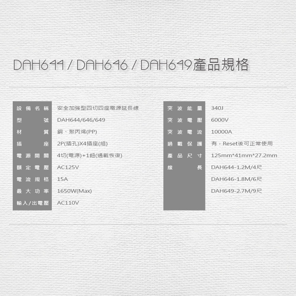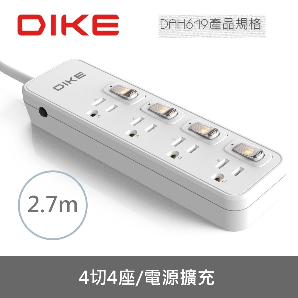 DIKE 安全加強型四切四座 電源延長線-2.7M/9尺 DAH649