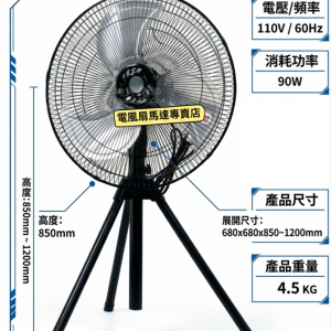 『中部批發』 藍水鯨 18吋 工業扇 三隻腳升降 升降電風扇 電風扇 通風扇 立扇 工業扇 通風扇 擺頭扇