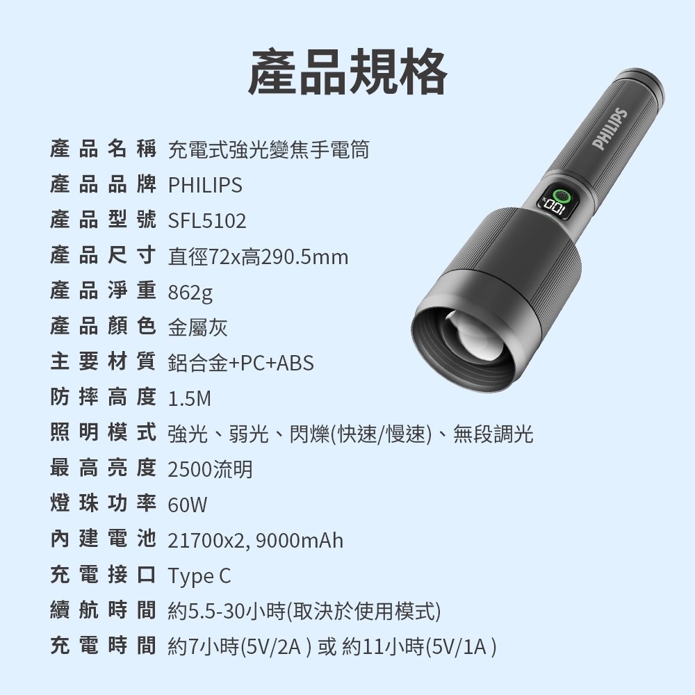 續航時間:12.5小時(弱光)、1.5小時(強光)