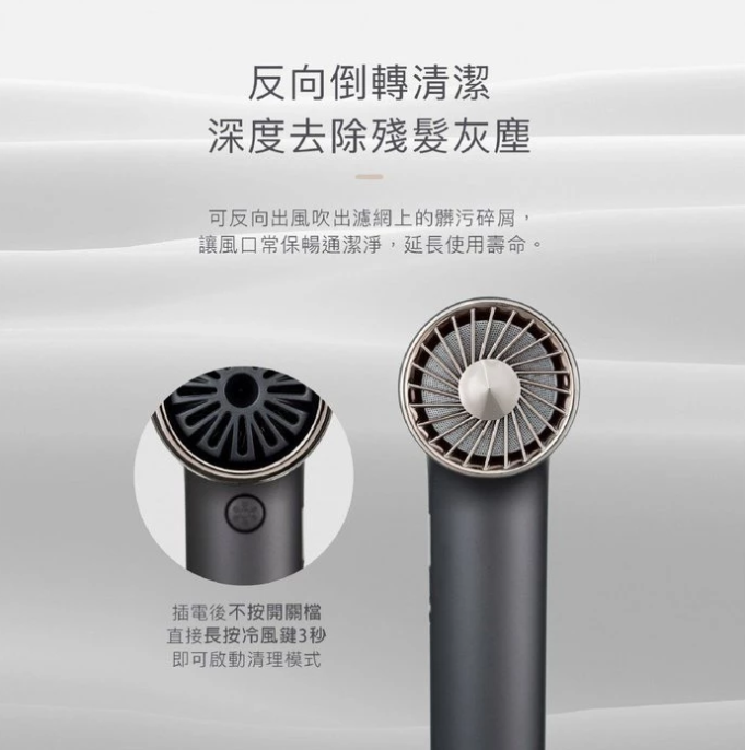 內附三種風嘴滿足各種需求長按冷風鍵、馬達反轉清除髒汙