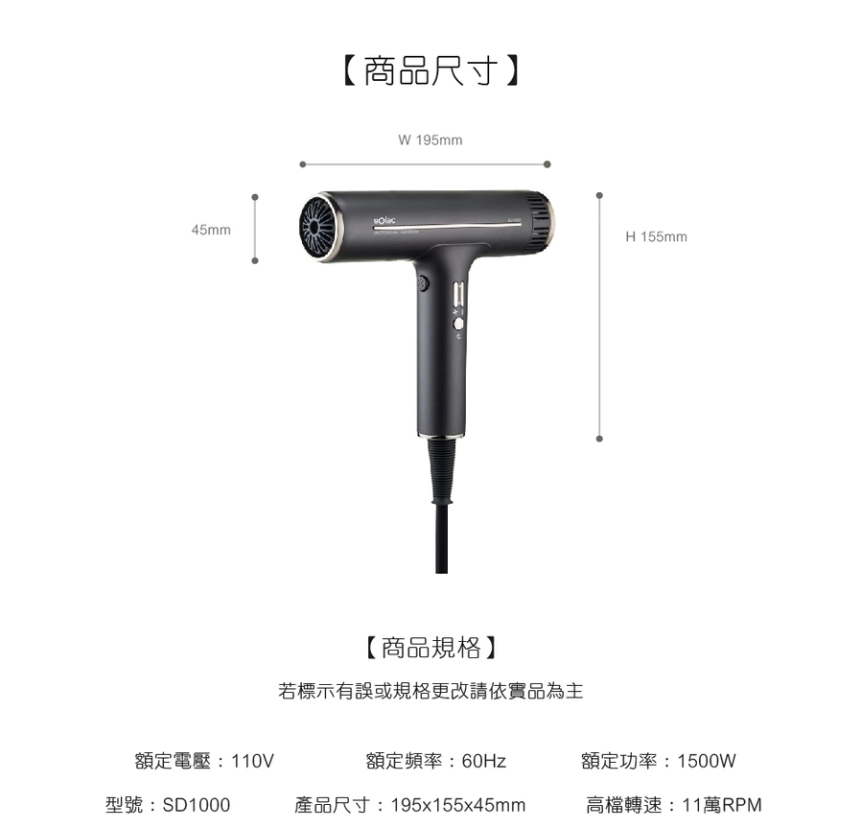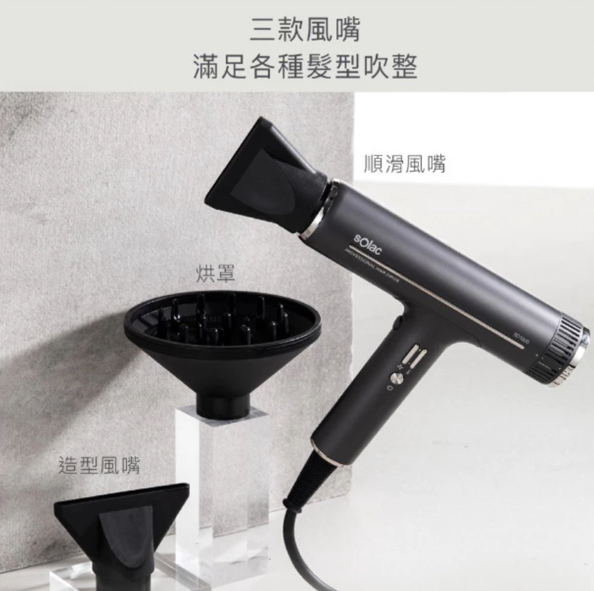 隨附配件順滑風嘴、造型風嘴、烘罩