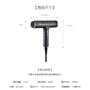 倍流增壓快乾 – 11萬轉高速無刷馬達 沙龍級護髮吹風機