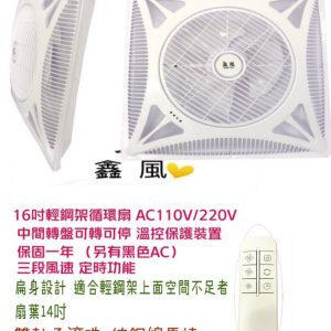 「鑫風」輕鋼架節能扇 WEI-02 大風量 轉盤可轉可停 輕鋼架循環扇 雙滾珠軸承馬達110v 大風量 拆裝容易空氣對流 16吋 三段風速 有遙控 冷氣房最愛 辦公室循環 循環扇 電扇 非威利 非阿拉斯加 數量