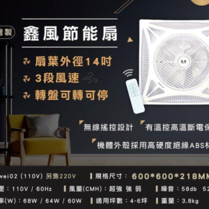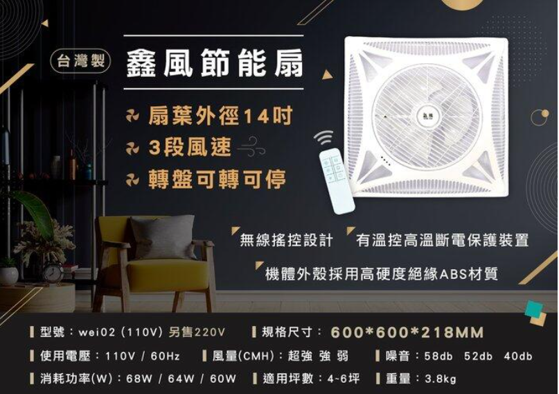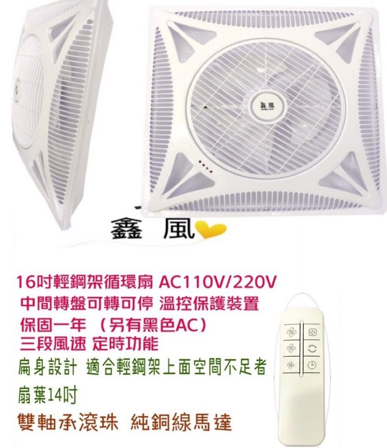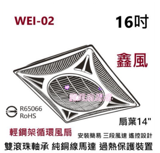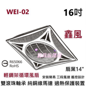 「鑫風」輕鋼架節能扇 WEI-02 大風量 轉盤可轉可停 輕鋼架循環扇 雙滾珠軸承馬達110v 大風量 拆裝容易空氣對流 16吋 三段風速 有遙控 冷氣房最愛 辦公室循環 循環扇 電扇 非威利 非阿拉斯加