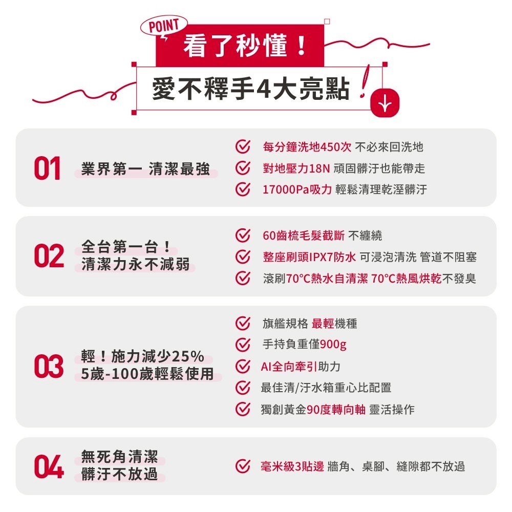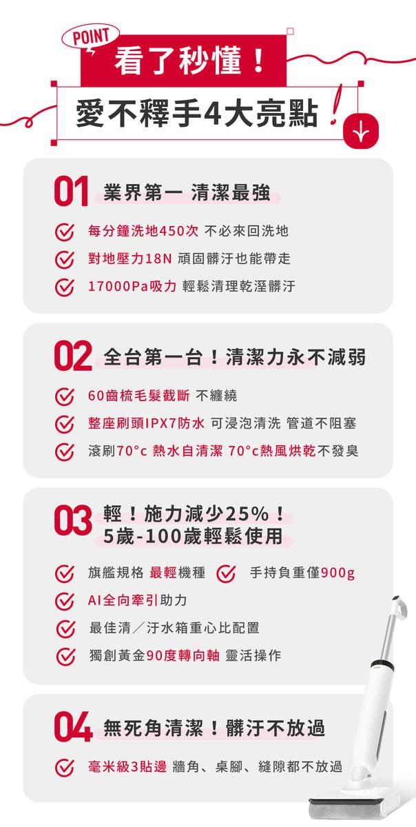 • 「免手洗」「乾淨不費力」呼應家事痛點 拖地、吸塵、洗刷三合一!